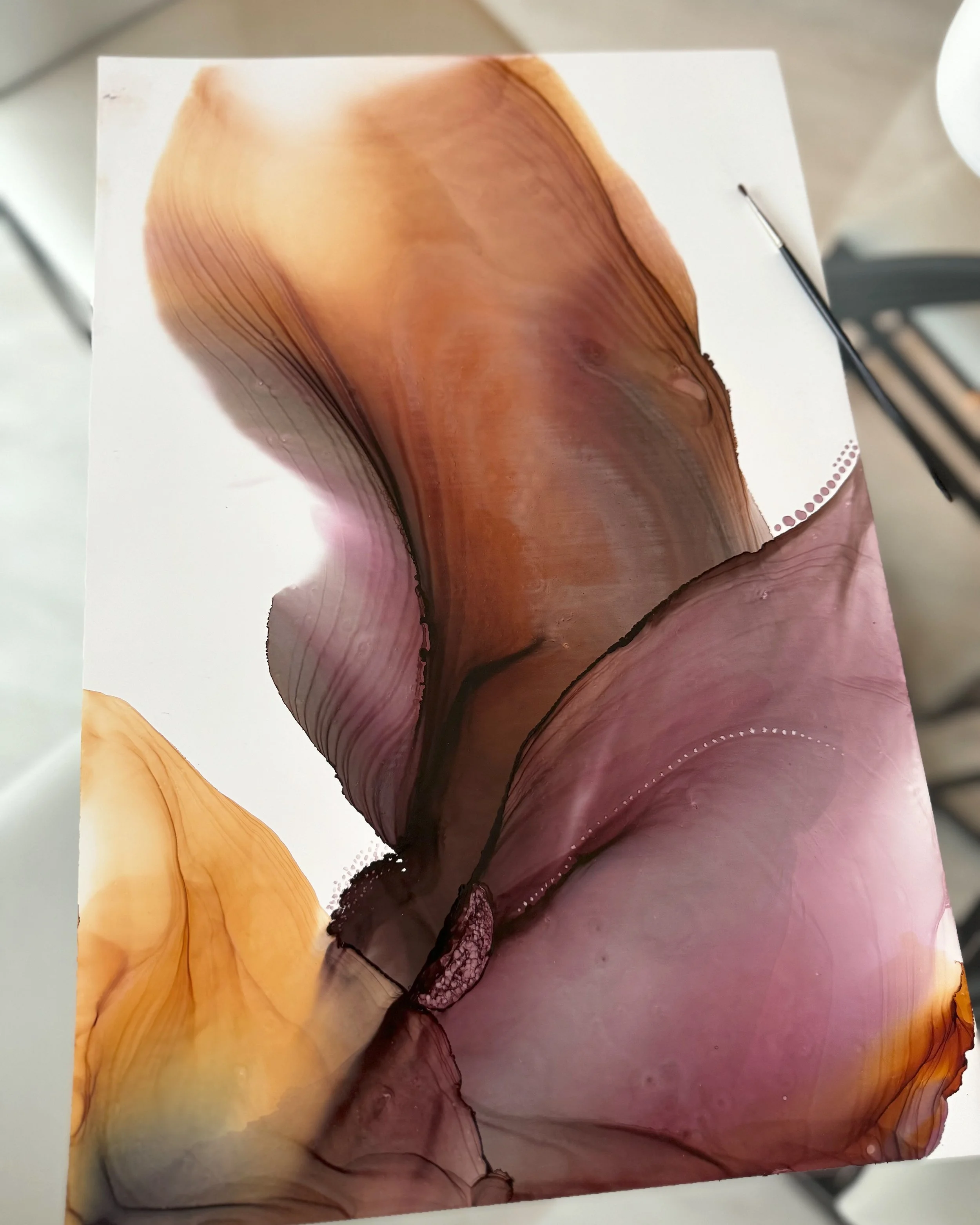 Alkoholimustemaalaus synteettiselle paperille. Teos on suojattu lakalla ja UV-suojalla.